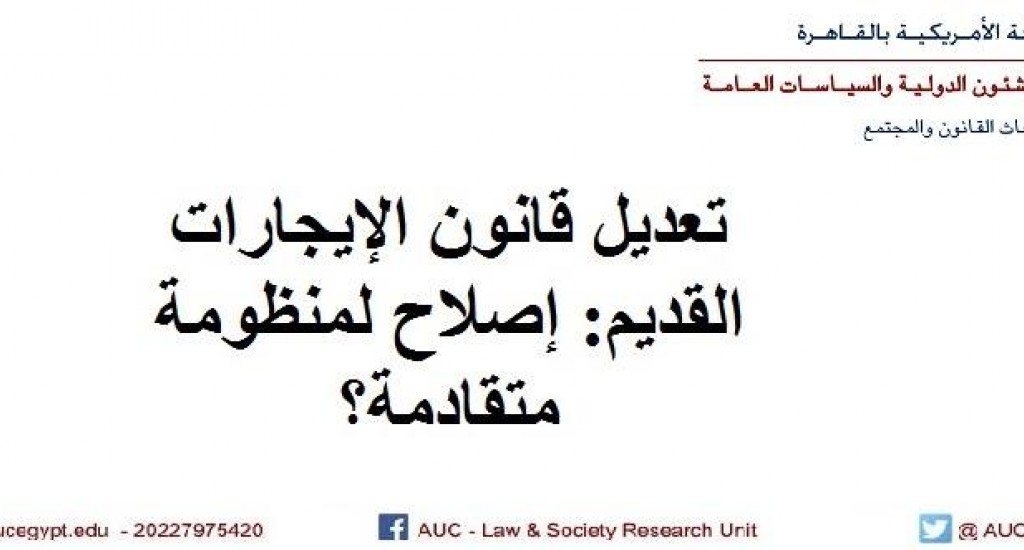 تنظم وحدة أبحاث القانون والمجتمع بالجامعة الأمريكية بالقاهرة،اليوم الثلاثاء، ندوة بعنوان «تعديل قانون الإيجارات القديم: إصلاح لمنظومة متقادمة؟»، وذلك في تمام الساعة السادسة مساء في القاعة الشرقية بحرم الجامعة الأمريكية بميدان التحرير.
